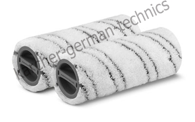 2 роликовые щетки из микроволокна для бережной влажной уборки любых твердых покрытий с помощью аппаратов для влажной уборки пола серии FC. Цвет - серый. Цветовая маркировка позволяет разделить использование щеток - желтые, например, для жилой зоны, а серый комплект – для ванной. Допускается очистка в стиральной машине при температуре 60 градусов.