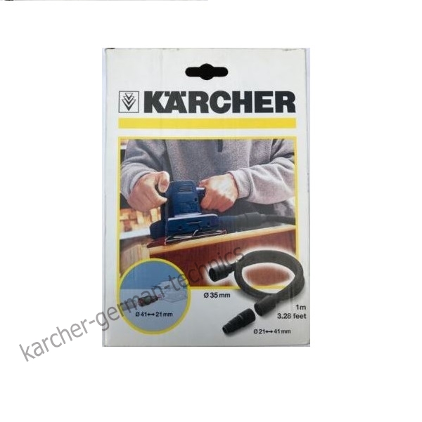 Состоит из тонкого и эластичного специального шланга (1 м) и адаптера для присоединения электроинструментов ко всем хозяйственным пылесосам Karcher, а также к A 2004, A 2054 Me, A 2206 X, A 2236 X pt, A 2554 Me, SE 3001, SE 4001, SE 4002, WD 2.200, WD 3 P, WD 3.300 M, WD 4.200, WD 5.300, WD 5.300 M, WD 5.500 M, WD 7.700 P, W D 2, WD 3, WD 3 P, WD 3 Premium, WD 4, WD 5, WD 6 P Premium, WD 3.800 M eco!ogic, WD 5.300 M, WD 5.500 M, WD 5.800 eco!ogic, WD 7.800 eco!ogic. Устанавливается между всасывающим шлангом пылесоса и отверстием выхода воздуха у электроинструмента. Позволяет немедленно собирать образующиеся при работе пыль, опилки или стружку. Диаметр 35 мм.