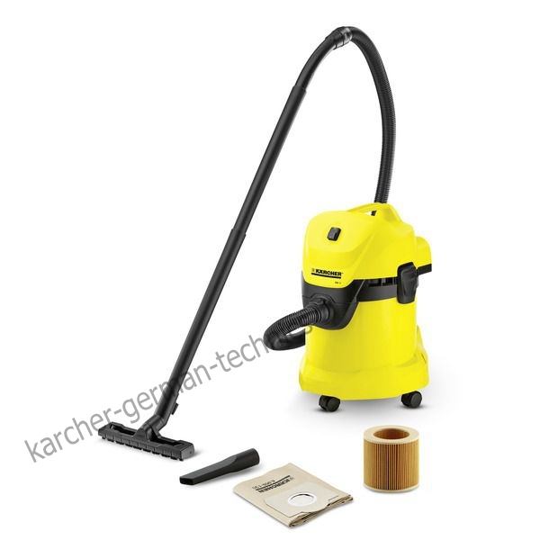 Пылесос WD 3 – хозяйственный пылесосов Kärcher, применяется для уборки сухого и влажного мусора и сбора воды. Потребляя всего 1000 Вт, он демонстрирует мощность всасывания, аналогичную пылесосам с потреблением 1400 Вт. 17-литровый контейнер позволяет легко и быстро собирать как крупный сухой мусор, так и влагу. Аппарат оснащен двумя удлинительными трубками, напольной насадкой для вдажной и сухой уборки, патронным фильтром и бумажным фильтр-мешком. Имеет функцию выдува, место для хранения кабеля, место для хранения аксессуаров и удобную ручку. Надежный помощник для использования в помещении и на открытом воздухе.