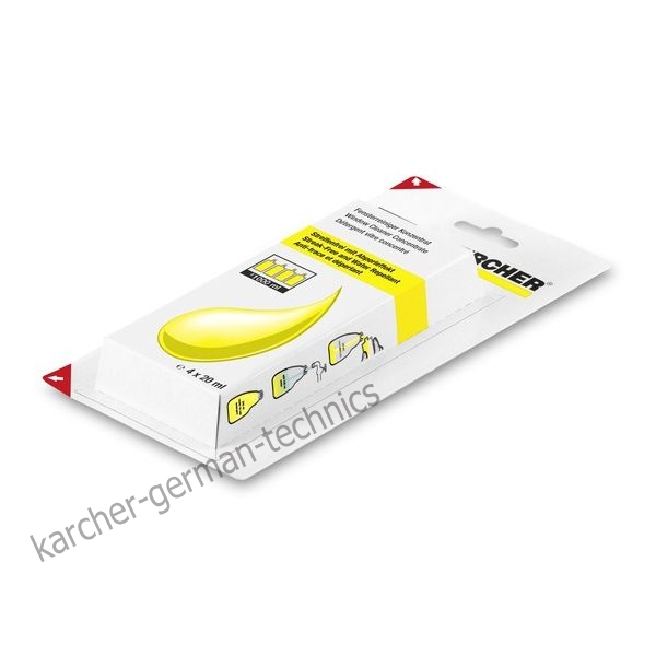 Вскрыть упаковку, залить концентрат в пульверизатор и разбавить 230 мл воды. Используется с оконными пылесосами Karcher WV.