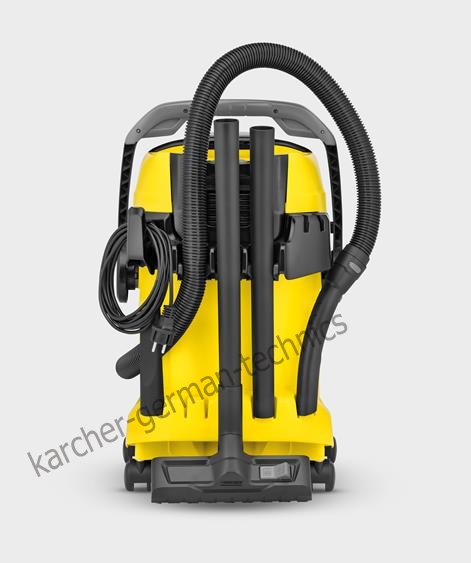 Пылесос WD 5 - модель мощного класса усовершенствованного поколения хозяйственных пылесосов Kärcher – идеальный вариант для уборки больших площадей. Высокая сила всасывания при потреблении всего 1100 Вт. Имеет контейнер емкостью 25 л, что позволяет собирать большой объем жидкости или мусора. Удобная конструкция системы фильтрации позволяет снять и отрусить фильтр без малейшего касания к нему руками: кассетник с фильтром расположен внешне и легко снимается одной рукой (не нужно открывать крышку пылесоса и доставать фильтр изнутри после работы). Аппарат оснащен двумя удлинительными трубками, напольной насадкой для вдажной и сухой уборки, плоским складчатым фильтром и фильтр-мешком из нетканного материала. Имеет функцию выдува, место для хранения кабеля, место для хранения аксессуаров, удобную ручку из антистатического материала и функцию автоматической прочистки фильтра.