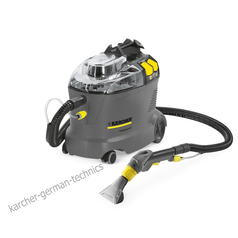 Puzzi 8/1 C – высокопроизводительный моющий пылесос начального уровня, специально предназначенный для чистки и удаления пятен на ковровых покрытиях и мягкой мебели. Так как по окончании чистки остается совсем немного влаги, снова начать пользоваться вещами можно достаточно быстро. С всасывающим шлангом с подводкой воды и ручной насадкой эргономичной формы в серийной комплектации.