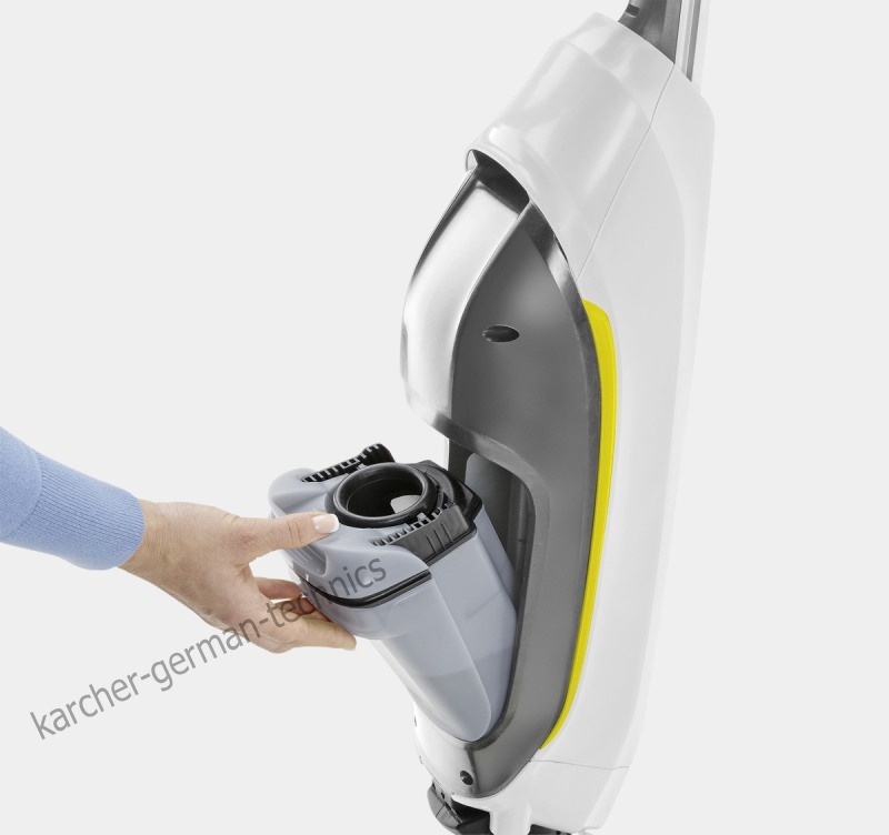 - Удобная система двух баков. Бак для чистой воды можно легко наполнить под краном. Гигиеничное снятие и опорожнение бака для грязной воды без контакта с грязью.