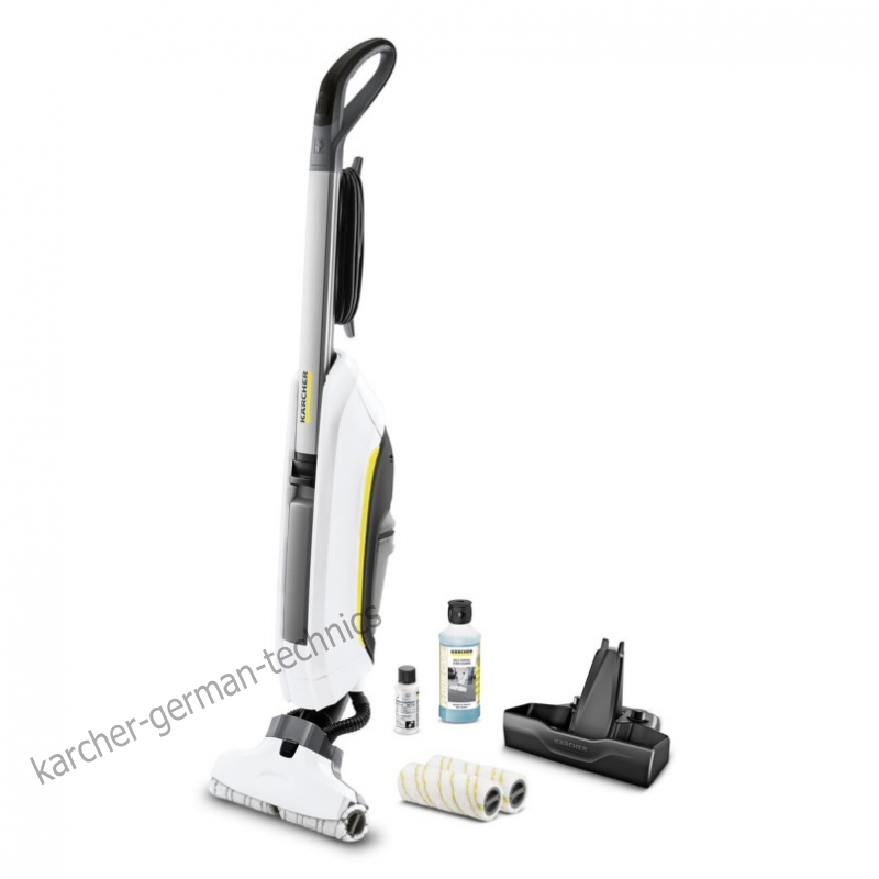 Поломойная машина для дома FC 5 Premium в комплекте с парой сменных роликов, универсальным чистящим средством и пробником средства для очистки деревянных полов. Аппарат FC 5 может использоваться для очистки любых твердых напольных покрытий из камня, дерева или пластика.
