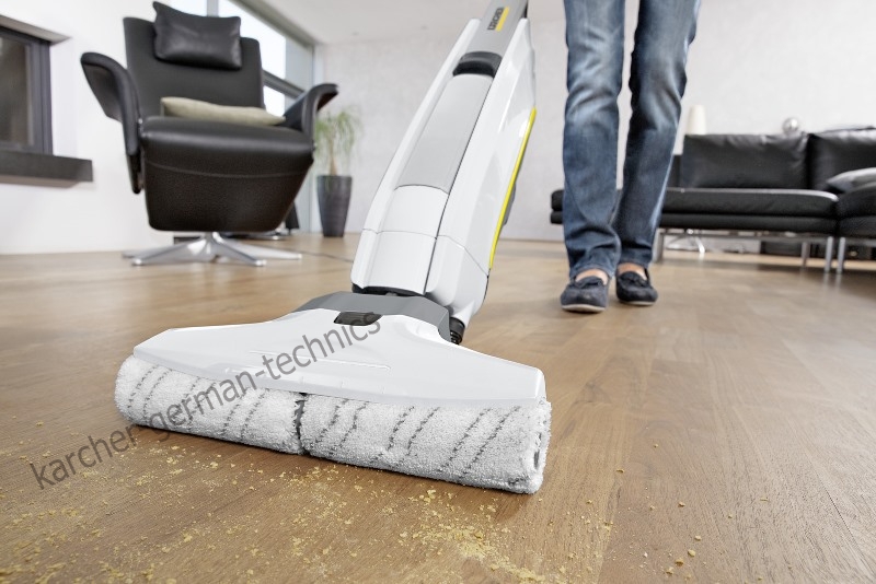 Пылесос для влажной уборки пола FC 5 Premium white с роликовыми щетками из микрофибры и функцией 2-в-1 для влажной уборки и сбора грязной воды одновременно. Благодаря функции 2-в-1 можно одновременно выполнить влажную уборку и собрать образовавшуюся влажную грязь вместе с мелкой пылью.